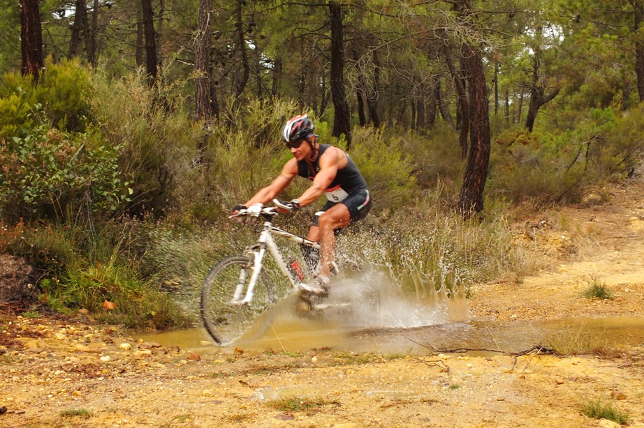 participante realiza un recorrido en bicicleta de montaña partiendo desde la